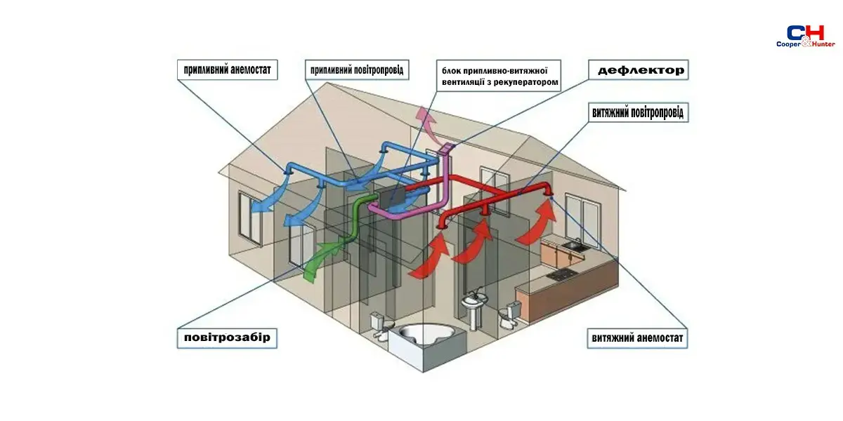 Подача вуличного повітря реалізується у “чистих” зонах – це приміщення, де людина проводить найбільше часу, наприклад: вітальня, спальня, дитяча, кабінет тощо.