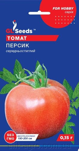 Томат “Персик” – середньоранній сорт. Вегетаційний період від сходів до технічної стиглості 115-120 днів. Кущ середньорослий, висотою 50-70см. Плід округлої фо …